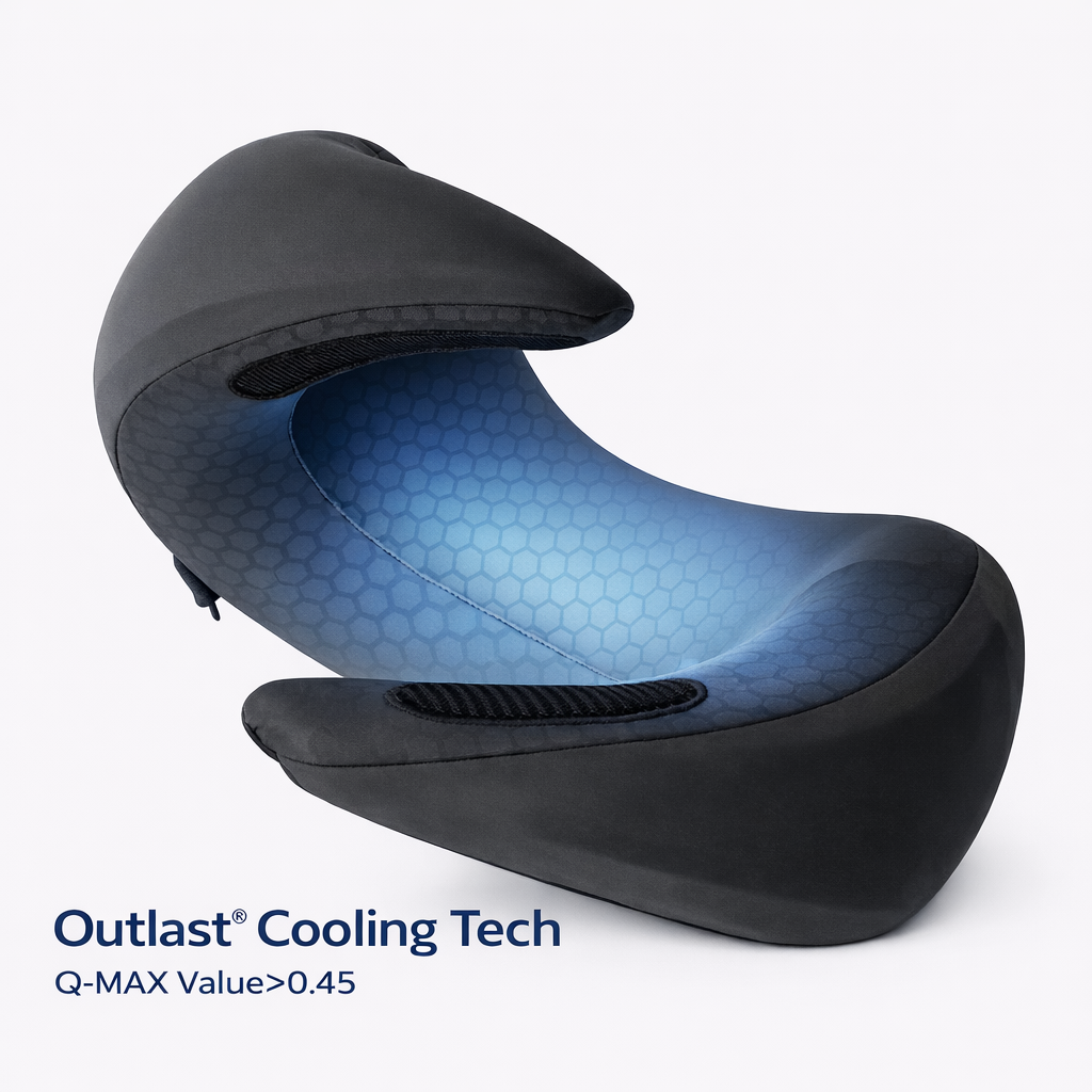 Outlast® technology actively absorbs excess heat and reduces sweat, keeping your neck cool and comfortable throughout long flights, road trips, and travel.