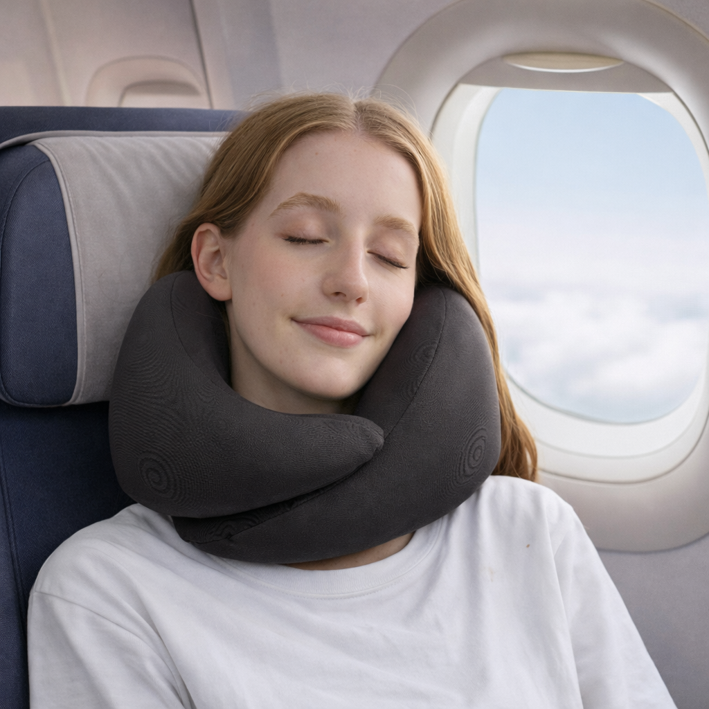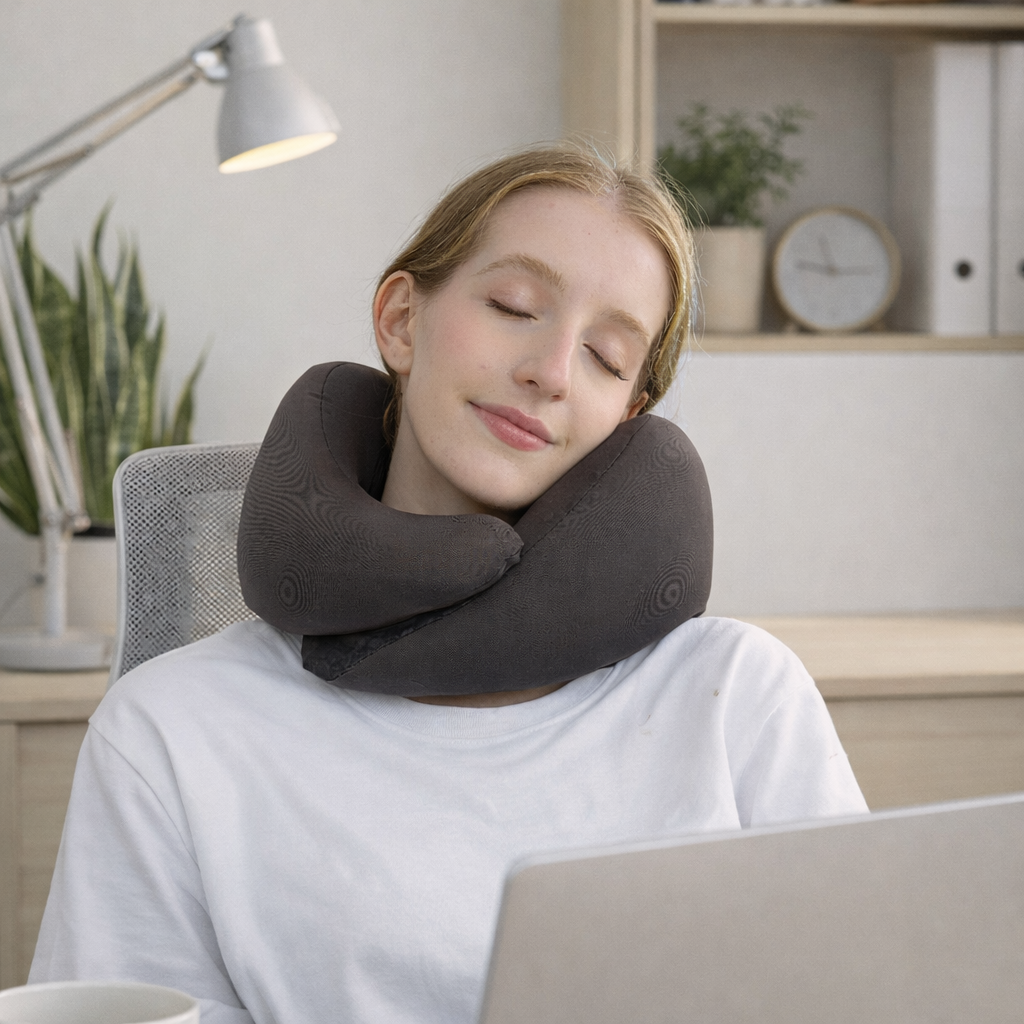 This travel pillow offers stable support from every angle—preventing head tilting and uncomfortable slouching. The contoured design promotes relaxation and helps minimize neck pain, stiffness, and fatigue on the go. Ideal for: