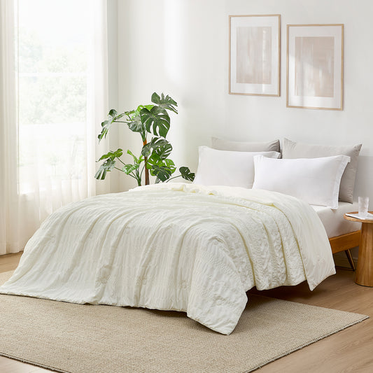 Seersucker Cooling Comforter-Cream White