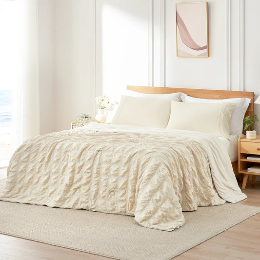 Seersucker Bubble Cooling Comforter-Khaki