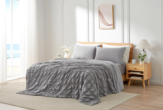 Seersucker Bubble Cooling Comforter-Dark Grey