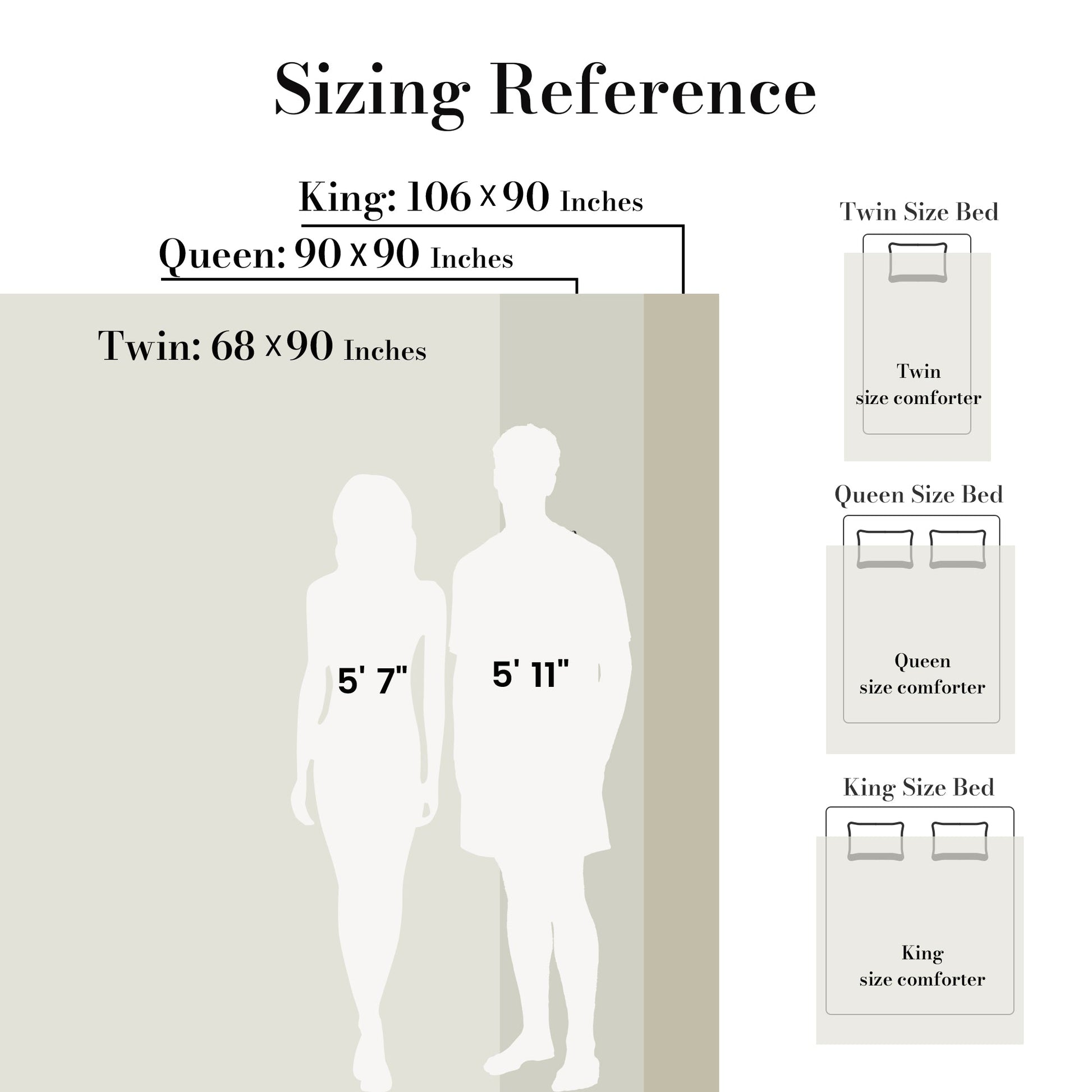 King Set: 1 King-size comforter (106" × 90") and 2 matching pillowcases (20" ×36").